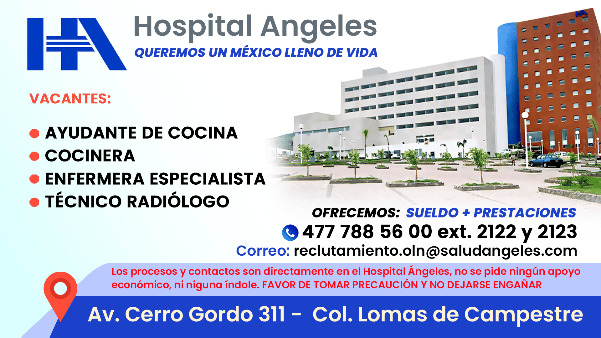 Los procesos y contactos son directamente en el Hospital Ángeles, no se pide ningún apoyo económico, ni ninguna índole. FAVOR DE TOMAR PRECAUCIÓN Y NO DEJARSE ENGAÑAR