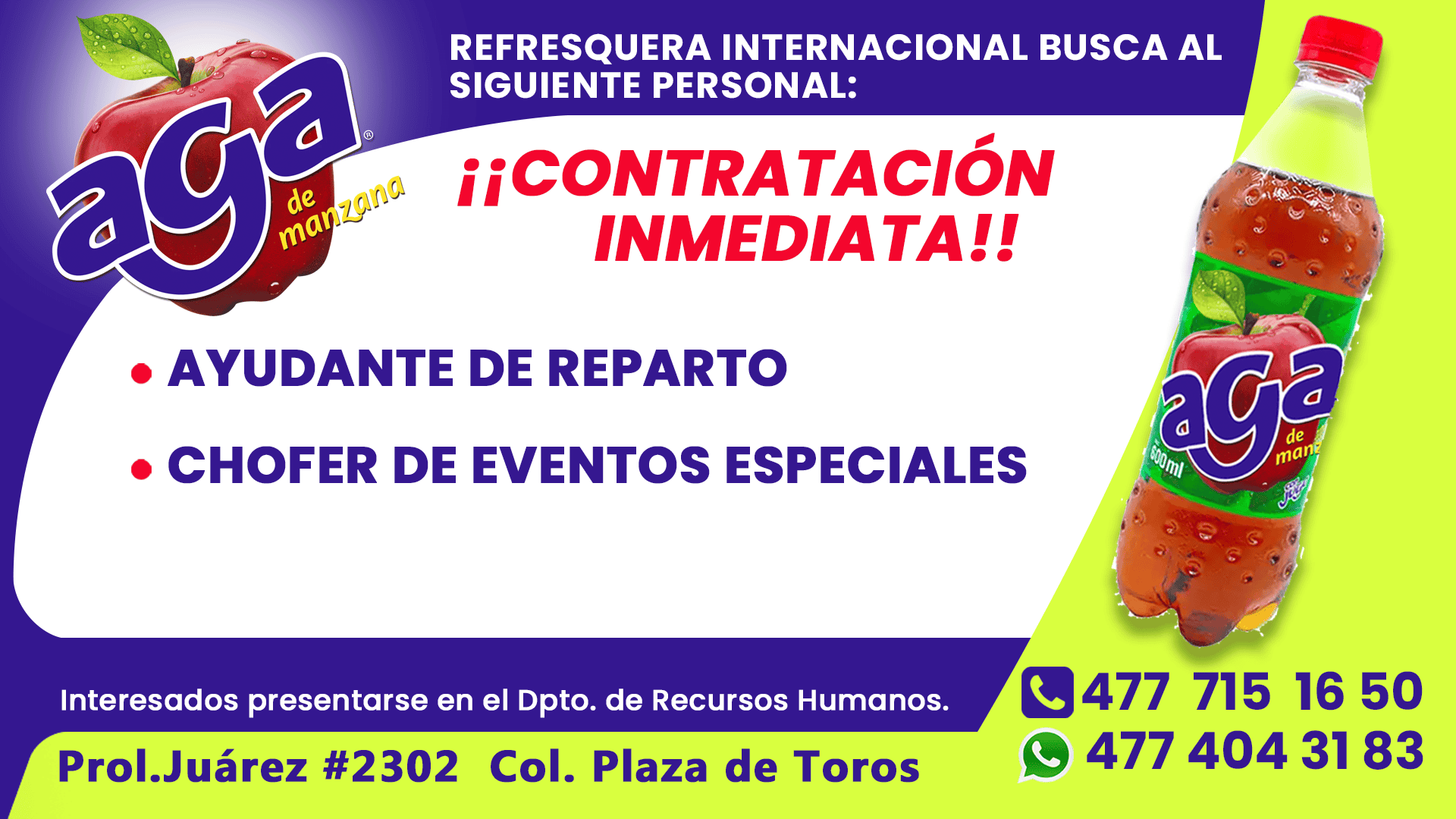 REFRESQUERA AGA SOLICITA