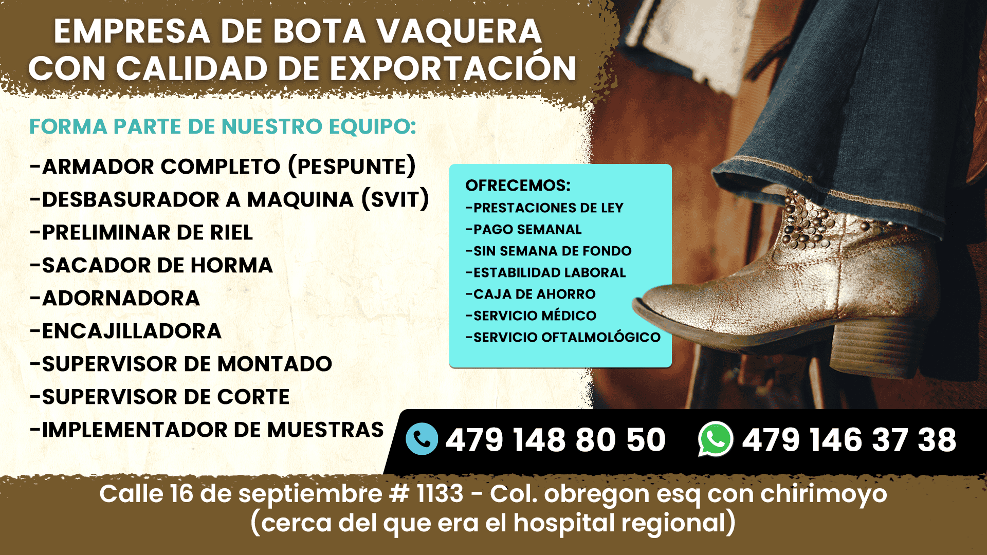 EMPRESA DE BOTA VAQUERA CON CALIDAD DE EXPORTACI脫N SOLICITA