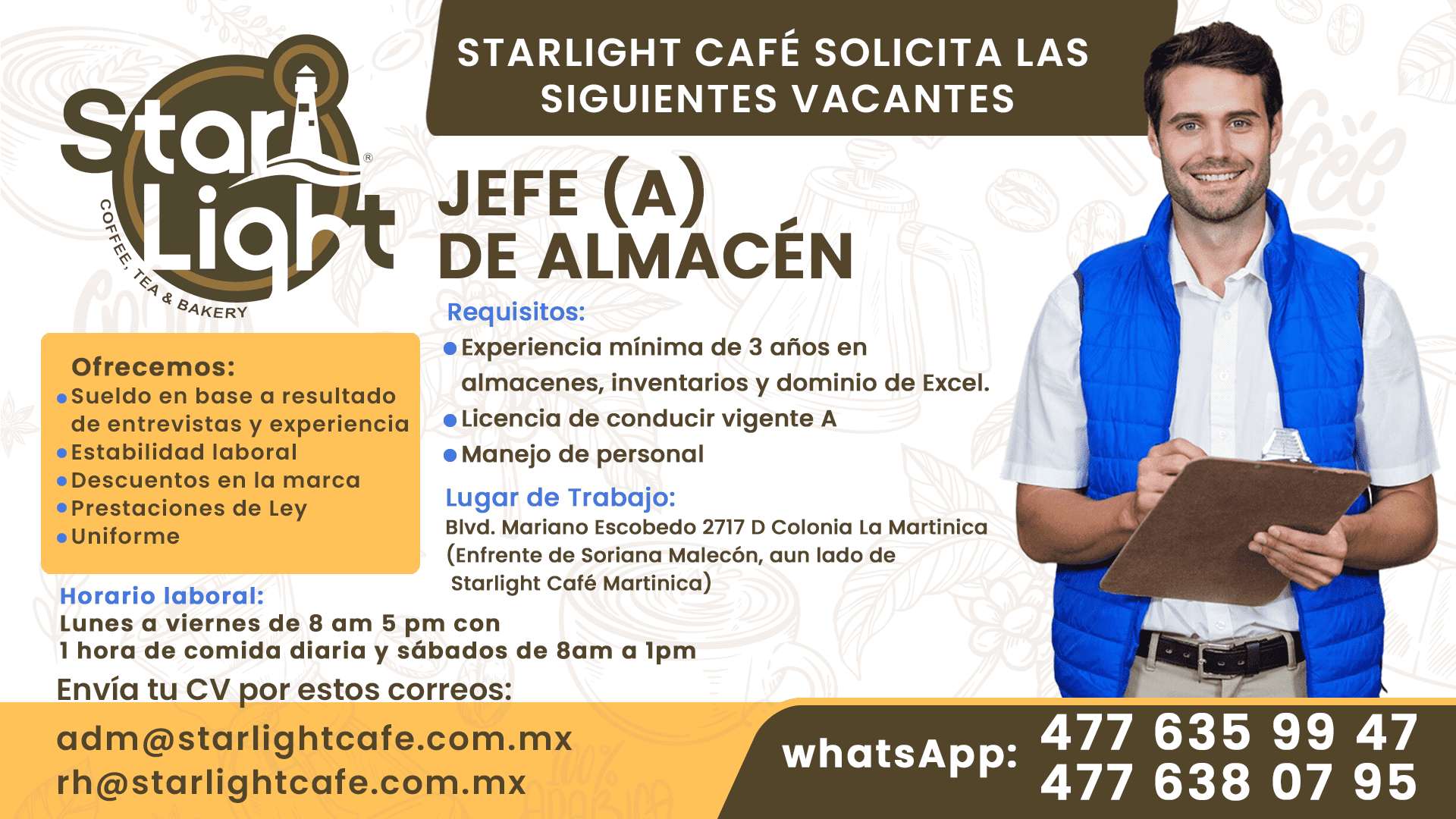 Experiencia mínima de 3 años en almacenes, inventarios y dominio de Excel.