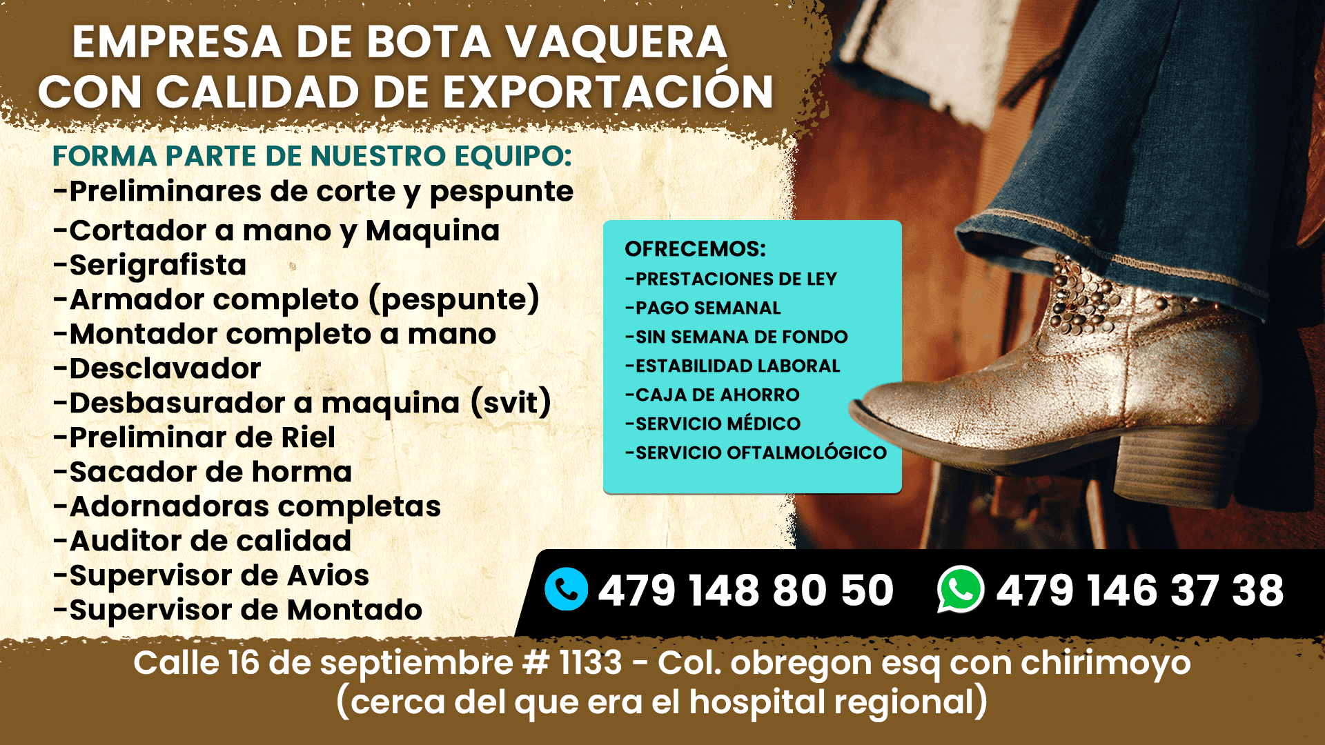 EMPRESA DE BOTA VAQUERA CON CALIDAD DE EXPORTACI脫N SOLICITA