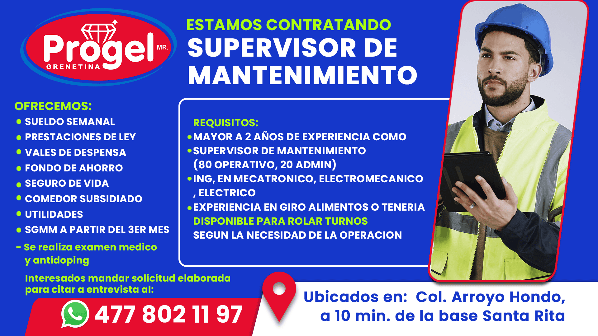 Mayor de 2 años de experiencia como supervisor de mantenimiento (80 operativo, 20 admin)